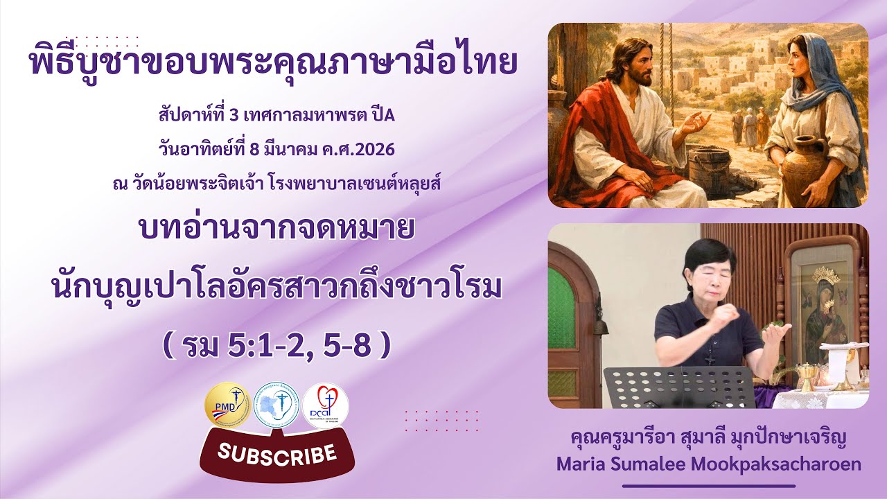 Ep.38 บทอ่านจากจดหมายนักบุญเปาโลอัครสาวกถึงชาวโรม ( รม 5:1-2, 5-8 ) #พิธีบูชาขอบพระคุณภาษามือไทย